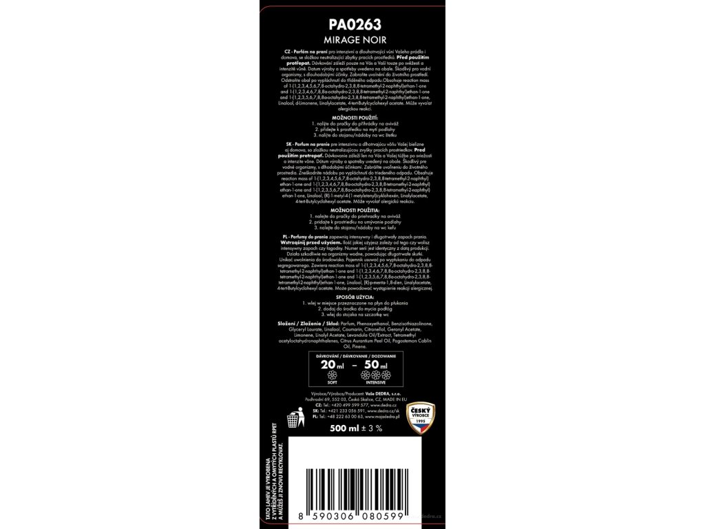 Dedra PARFUMAGE MIRAGE NOIR Parfém na praní a úklid 500 ml