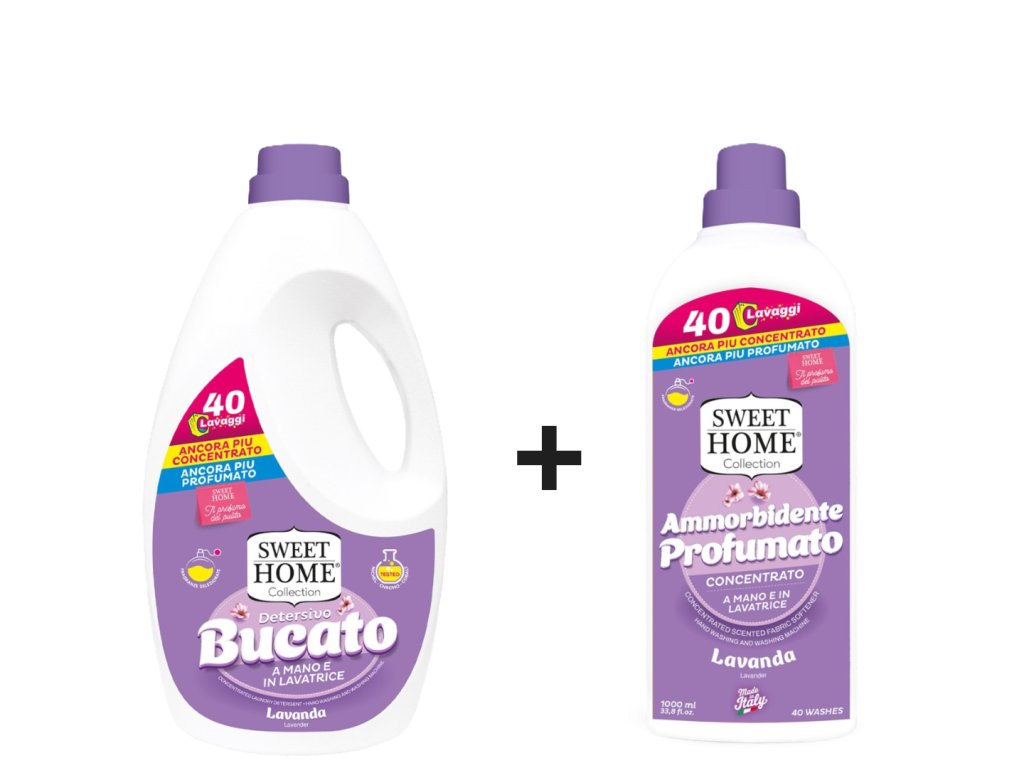 Vdechněte svému prádlu klid a harmonii s exkluzivní sadou Sweet Home prací gel + aviváž Levandule.